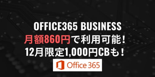 高いオフィスはこれで安くなる!1TBのクラウドストレージつき!Office365businessが12月限定で1,000円キャッシュバック中です!さらに36ヶ月契約なら900円/月→860円/月になるキャンペーンも!