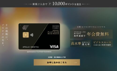 アポロステーションプラチナビジネスカードの特徴やメリット、申し込み方法を詳しく解説します。モッピーから申し込むと最大50,000円分のポイントがもらえるお得なキャンペーンも実施中です。法人向けの高級カードをお探しの方は必見です。